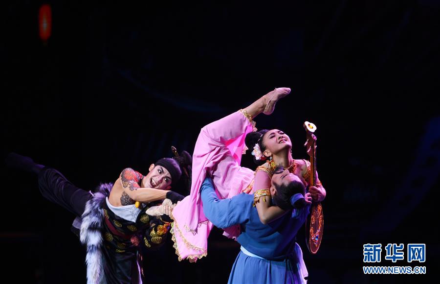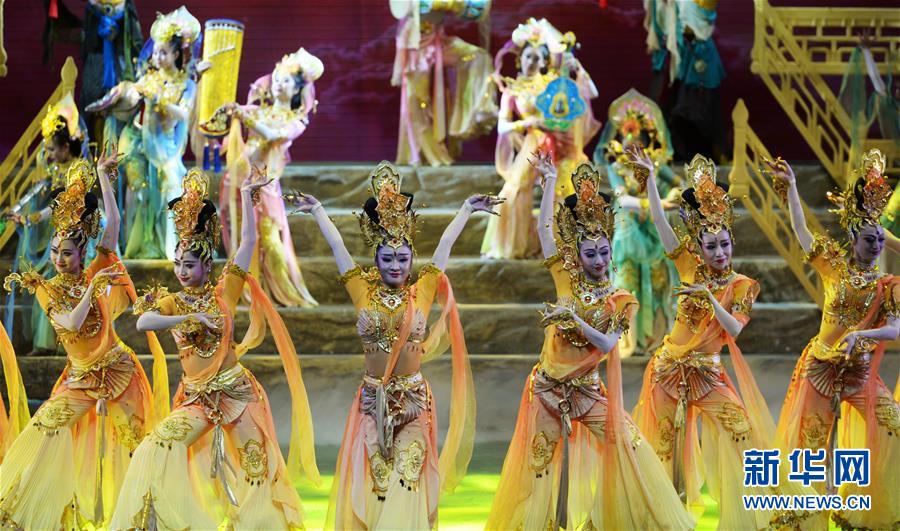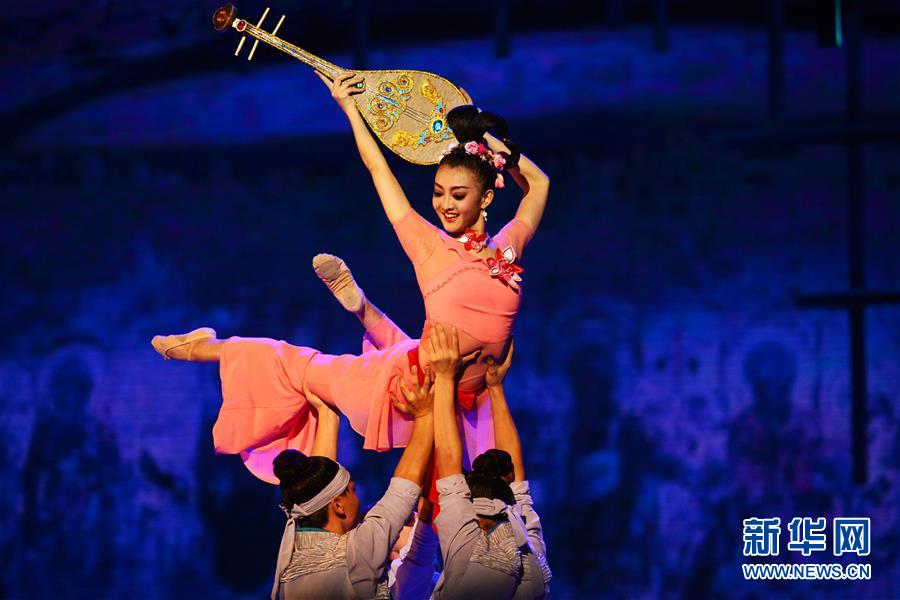 9月19日,演员在敦煌大剧院表演舞剧《丝路花雨》。当日,作为首届丝绸之路(敦煌)国际文化博览会的主要演出之一,重新创排的2016版中国经典舞剧《丝路花雨》在甘肃敦煌正式上演。据了解,这是继1979版、2008版之后,舞剧《丝路花雨》再次创排演出。自1979年首演至今,该剧已出访40多个国家和地区,演出2800余场,观众超过400万人次。新华社记者 陈斌 摄 来源:新华社