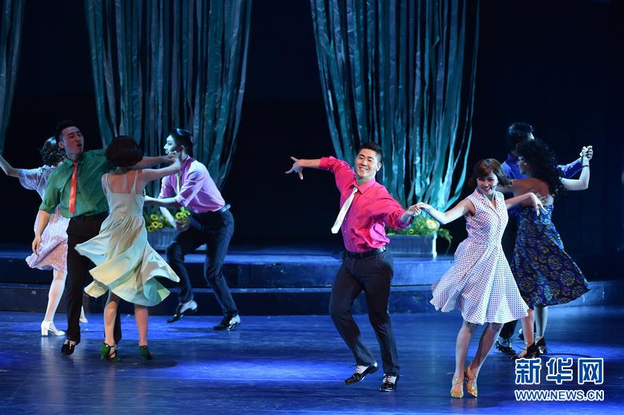 10月12日,演员们在“美国舞会”上欢快地舞蹈。当晚,由音乐剧制作人李盾策划创作、作曲家金培达谱曲的音乐剧《啊!鼓岭》登陆天桥艺术中心大剧场与京城观众见面,正式拉开了第二届北京天桥音乐剧演出季的帷幕。新华社记者 李鑫 摄