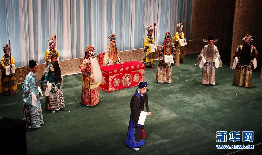 10月13日,演员在舞台上表演京剧《将相和》。著名京剧表演艺术家于魁智、李胜素等领衔的经典大戏《将相和》和《白蛇传》将于10月13日至15日在伦敦孔雀剧院上演。 新华社记者韩岩摄