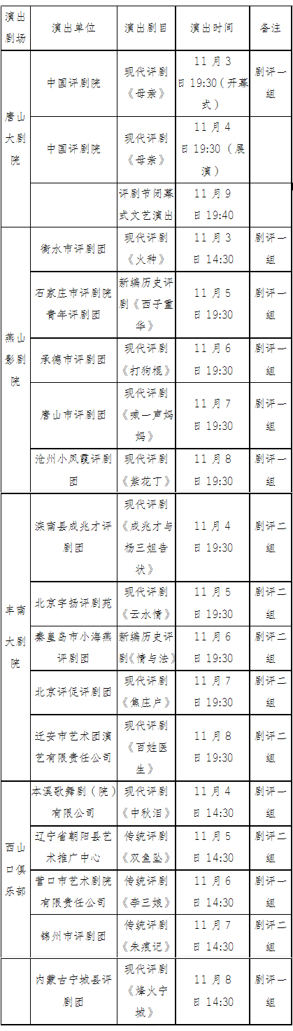第十届中国评剧艺术节演出安排表
