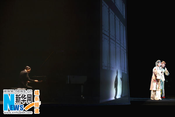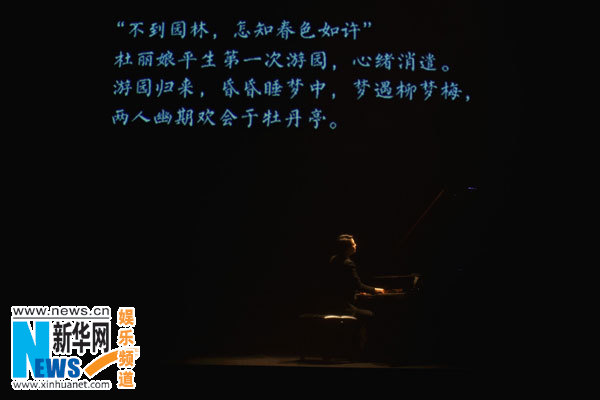 两块半透明的幕布笼罩台前,饱含象征意味视觉影像映射在幕布上,熊熊燃烧的火焰和孤寂月影的出现,让观众体验到身临其境的现场震撼。顾劼亭把钢琴与昆曲两种截然不同的艺术形式巧妙结合,通过德彪西(钢琴)与杜丽娘(昆曲)二个剧中“人物”的“相遇”及“平行”关系,表达了东西方文化的相知、相通和相融。这种跨界融合的作品形式,让严肃音乐艺术以一种更加融入生活的方式被大众所接受。