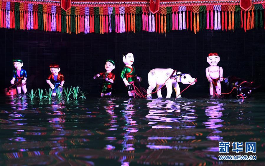 12月11日,一场越南水上木偶戏表演在广西凭祥市浦寨国门大厦广场举行,吸引了众多游客和市民的目光。越南水上木偶戏为越南传统的文艺表演,表演方式是在水池上搭起舞台,由隐藏在后台的演员用长线或竹竿操纵木偶,让木偶活灵活现地演绎各种故事。新华社记者 张爱林 摄