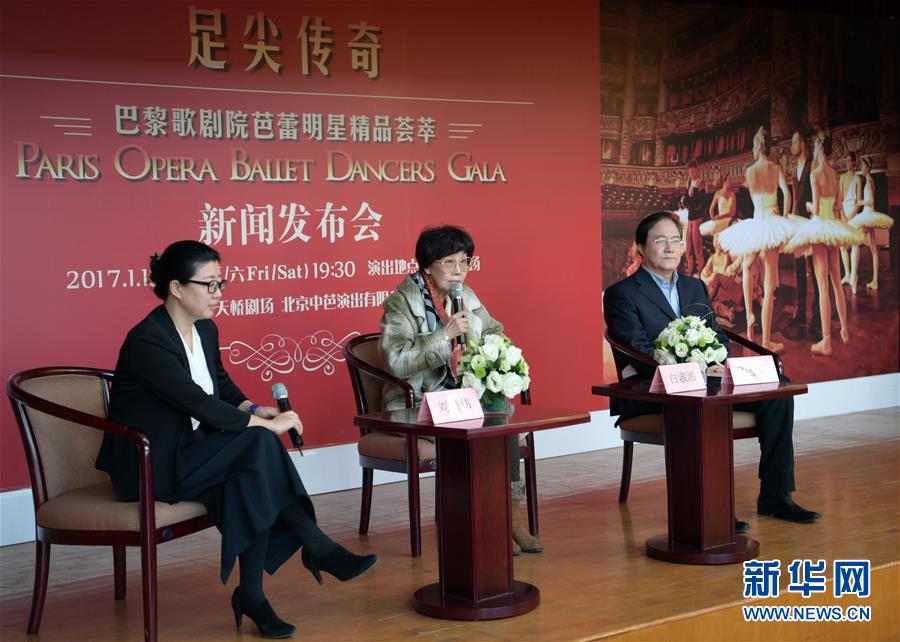 12月9日,中国舞蹈家协会名誉主席白淑湘(中)、中央芭蕾舞团副团长王全兴(右)、天桥剧场总经理刘精伟出席发布会。当日,《足尖传奇》巴黎歌剧院芭蕾明星精品荟萃新闻发布会在北京举行。据悉,法国巴黎歌剧院芭蕾舞团的艺术家们将于2017年1月13日至14日在北京天桥剧场演出《卡门》《睡美人》《天鹅湖》等经典芭蕾舞选段,向观众展示法国芭蕾的细腻与浪漫。新华社记者金良快摄 来源:新华社