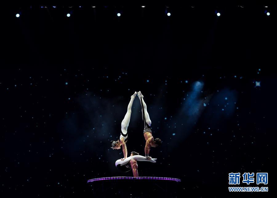 12月14日,中国杂技团演员在开幕式晚会《一品一三绝》上表演。当日,第三届中国杂技艺术节在河南洛阳开幕,将有20个杂技院团的24个精品节目和10台优秀杂技晚会、剧目呈现给观众,体现我国当前杂技发展的水准和成果。本届艺术节由中国文学艺术界联合会、中国杂技家协会、中共河南省委宣传部、洛阳市人民政府主办,将持续至12月20日。新华社记者才扬摄