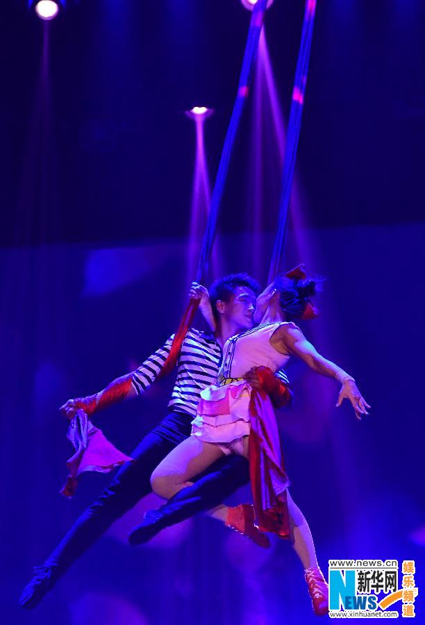 12月18日,演员在河南洛阳举行的第三届中国杂技艺术节上表演舞台剧《因为爱》。当日,由山东省杂技团担纲演出的舞台剧《因为爱》在第三届中国杂技艺术节上亮相。该剧以《车技》《空中吊子》等中国传统杂技艺术元素为基础,巧妙地融合了川剧变脸、皮影戏等艺术形式,讲述了一位才情横溢的青年画家在爱情遭遇挫折时以画抒怀的故事。新华社记者冯大鹏摄 来源:新华社