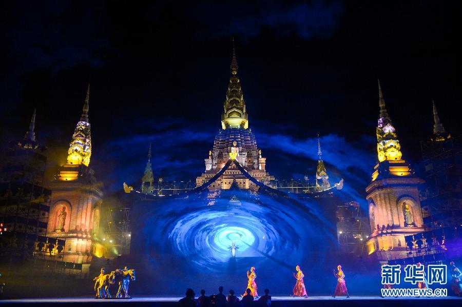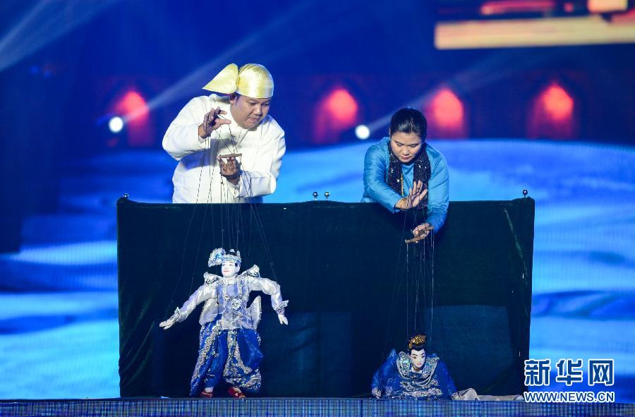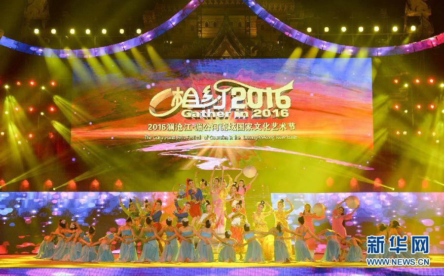 12月18日,演员在2016年澜沧江·湄公河流域国家文化艺术节开幕式晚会上表演歌舞《走到一起来》。当日,2016年澜沧江·湄公河流域国家文化艺术节在云南省西双版纳傣族自治州开幕。本届文化艺术节以“亲诚惠容、合作共赢”为主题,中国、老挝、缅甸、泰国、柬埔寨和越南的艺术家将进行为期3天的文化艺术交流。新华社记者 李琰 摄 来源:新华社