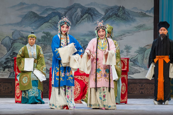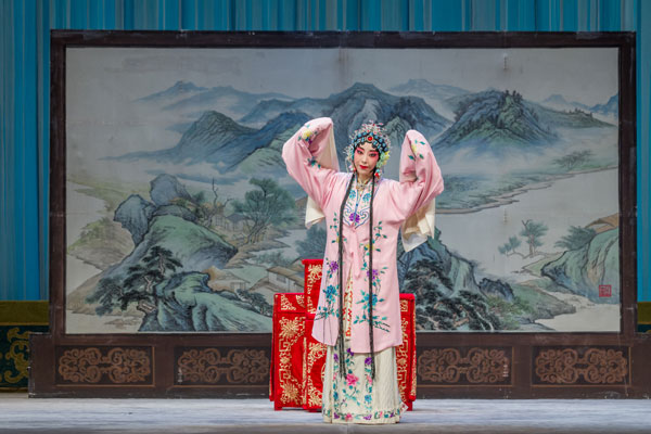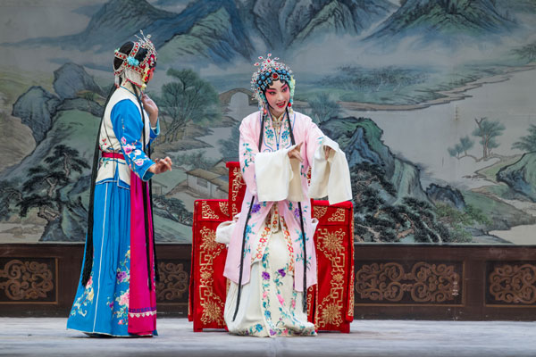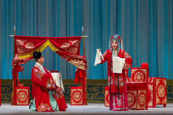 京剧《凤还巢》为梅派代表剧目,讲述的是,兵部侍郎程浦有二女,大女雪雁相貌丑陋且行为举止粗鲁,二女雪娥生得国色天姿亦知书达礼。程浦为雪娥择得佳婿穆公子,程夫人却私为貌丑亲女定下夺夫之计。在程浦寿宴上,大女雪雁私见穆公子,其丑陋之貌惊走穆公子。穆公子投军,两军阵上立功,被封为将军。此时,程侍郎重提婚事,让他与雪娥完婚。穆公子认定雪娥是丑陋之女,于是,洞房之夜闹出了一场啼笑皆非的喜剧。多番曲折后,佳人终成眷属,一家团圆。史春阳 摄影报道