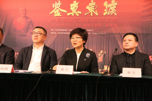 由江苏省委宣传部组织指导、江苏省演艺集团打造的原创史诗歌剧《鉴真东渡》于2016年12月在日本东京首演。继赴日巡演获成功后,该剧将于2017年2月5日—6日亮相国家大剧院。 2017年1月12日,江苏省演艺集团就此次演出在国家大剧院举办新闻发布会。江苏省委宣传部副部长徐宁、江苏省委外宣办副主任杨力群、江苏省演艺集团总经理柯军、江苏省演艺集团副总经理杜小甦、作曲家唐建平、导演邢时苗、编剧冯柏铭、冯必烈,国家大剧院演出部副部长江涛,主演柯绿娃等出席发布会。