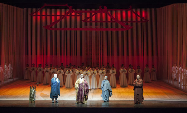 2月5日、6日晚的演出,是原创歌剧《鉴真东渡》在国内舞台上的首度正式亮相。这次在国家大剧院以一流的阵容演出这样一部精品剧目,不仅是江苏打造高水准原创歌剧“五年计划”实施情况的总结和汇报,也希望通过这样一个窗口,让首都观众感受到江苏作为文化大省、艺术大省的特色与魅力。