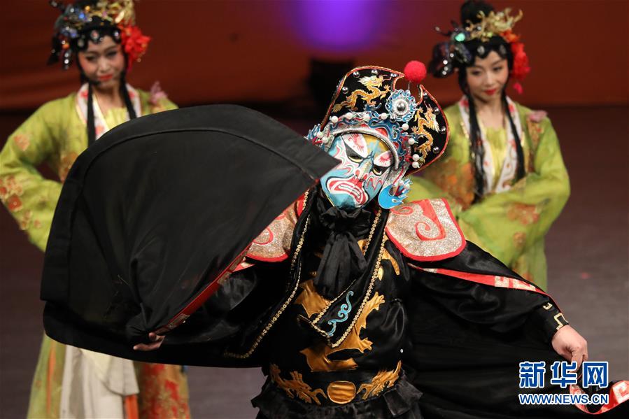 1月18日,在波黑萨拉热窝人民剧院,“欢乐春节”东欧行演出团演员表演川剧变脸。受中国文化部委派,由四川艺术职业学院组织的“欢乐春节”东欧行演出团18日抵达波黑首都萨拉热窝。这是“欢乐春节”首次登陆波黑,也由此开启了2017年“欢乐春节”东欧四国巡演第二站的行程。新华社发(哈里斯·梅米亚摄)
