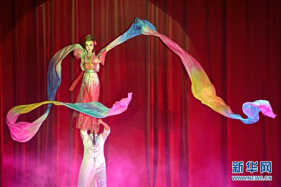 1月18日,在马来西亚沙捞越州诗巫,“文化中国·四海同春”艺术团演员在舞台上表演。由国务院侨务办公室派出的“文化中国·四海同春”艺术团18日在马来西亚沙捞越州诗巫进行了在该国的最后一场演出。 新华社发(张纹综摄)