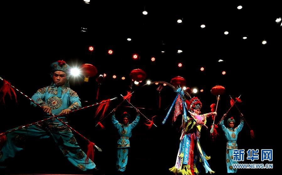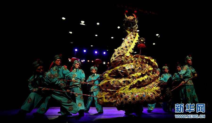 1月19日,中国浙江建德市婺剧团演员在约旦首都安曼表演《吉祥中国龙》。中国浙江建德市婺剧团精品折子戏专场演出19日晚在约旦首都安曼侯赛因文化中心上演,让在约华侨华人以及对中国文化感兴趣的约旦民众大饱眼福。此次演出也是2017年约旦“欢乐春节”活动的重要内容。新华社发(穆罕默德·阿布·古什摄)