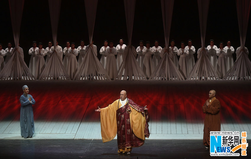 仁如法师告诉记者,他除了为歌剧的宗教仪轨方面“把关”外,还将佛教中的“手印”等有特殊意义的表达方式融入艺术表现形式,而他的诵经也与乐队演奏、甚至歌唱交相呼应,甚至在鉴真一度对东渡产生彷徨时,他的诵经起到了坚其心志的作用,因此这一“角色”的设置,既新颖又令人信服。