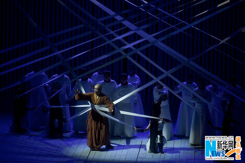 用歌剧讲述一个僧人的历险,缺乏惯有的爱情戏剧冲突,那么如何通过鉴真表达“爱”?导演说,这部歌剧刻意淡化故事情节,偏重于人性、心理的刻画,放弃世俗之爱,将鉴真东渡上升为世间大爱的高度,气势磅礴,起到了意想不到的艺术效果。