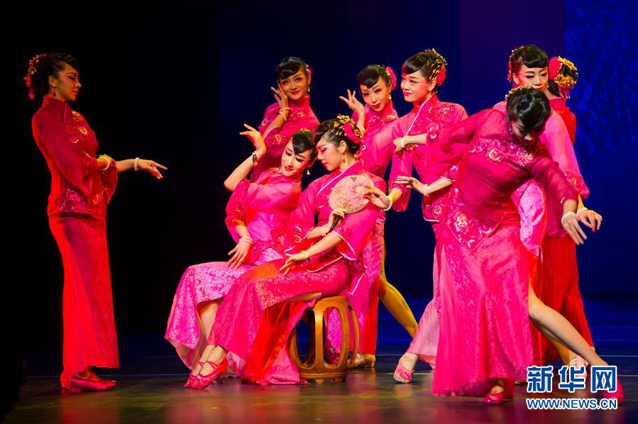 2月13日,中国东方歌舞团演员在表演舞蹈诗画《国色》。当晚,由国务院侨务办公室主办的2017年“文化中国·四海同春”澳门站演出在澳门文化中心剧院上演。新华社记者 张金加 摄